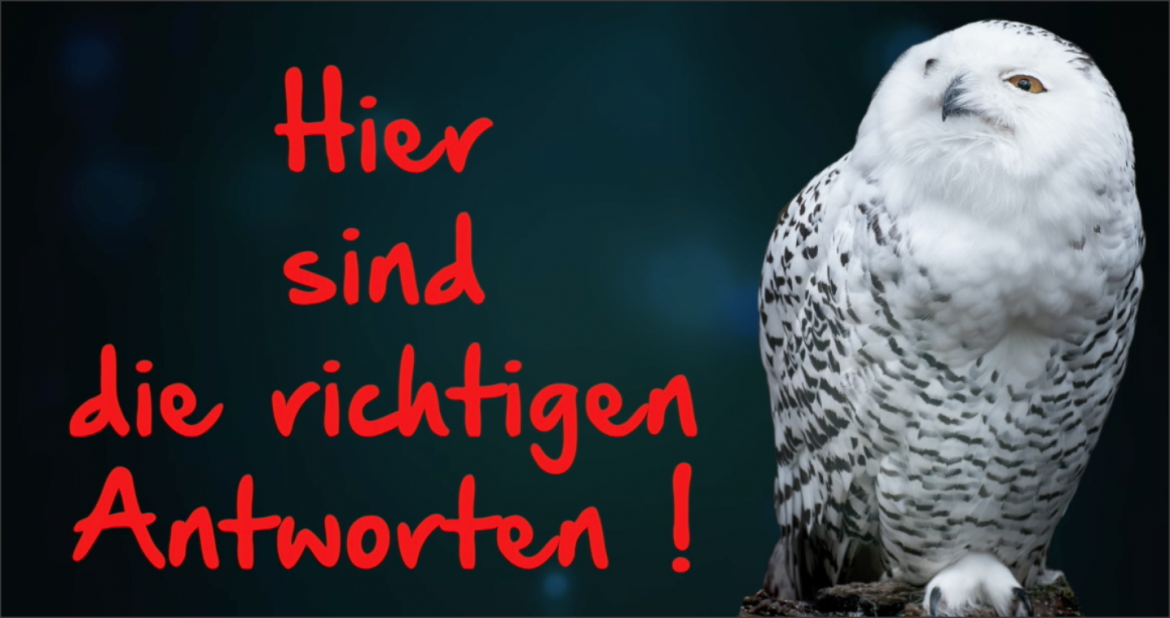 Lasst euch nicht irritieren: Es werden noch mal alle Fragen aufgeführt und direkt hinter einer Frage folgt die jeweilig richtige Antwort.